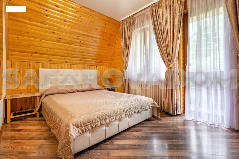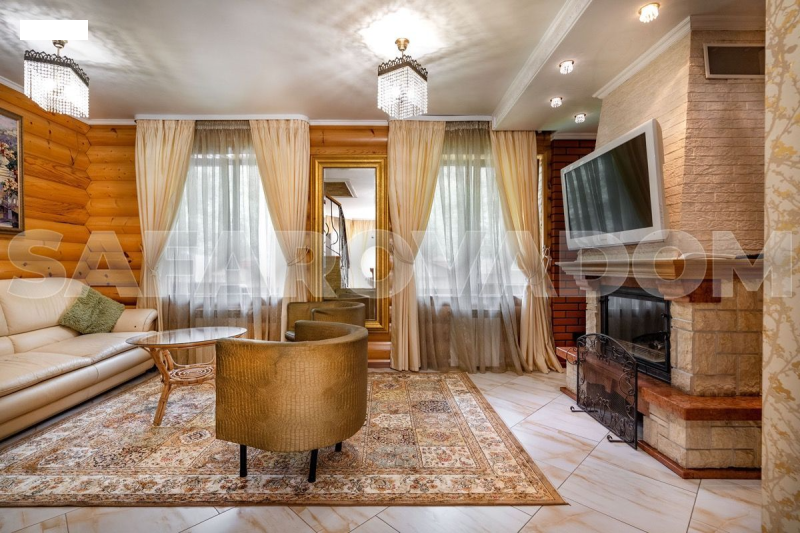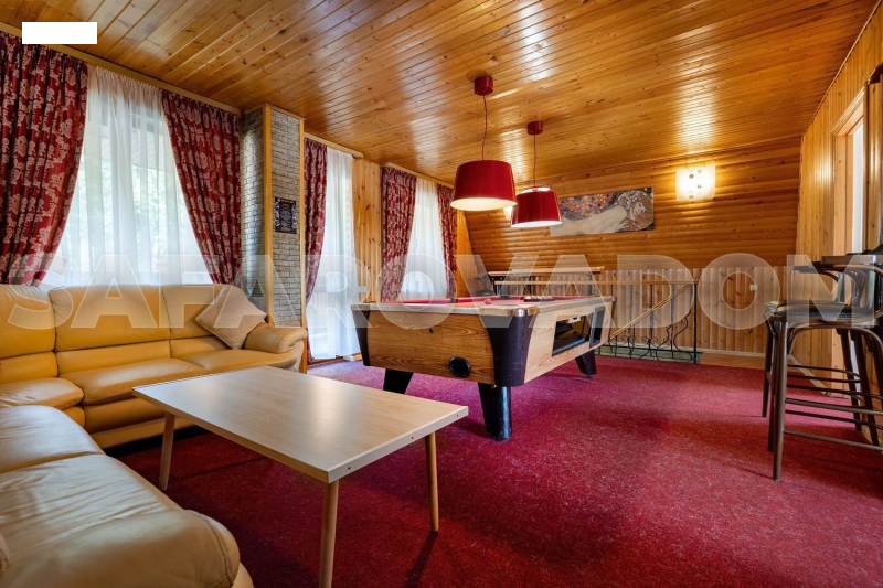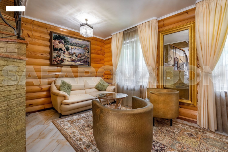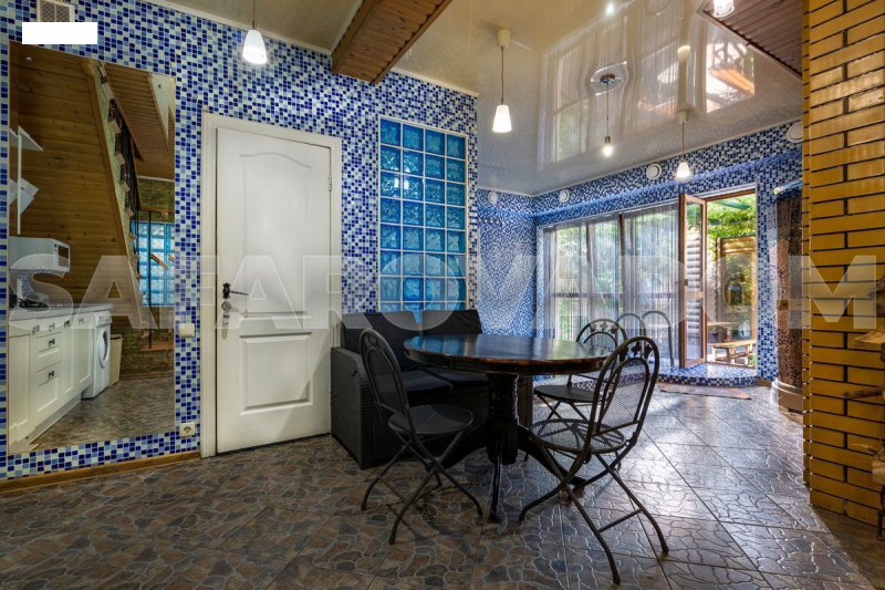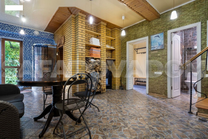 №9 2-этажный коттедж 300 м² (бревно) на участке 6 сот., Симферопольское шоссе, 45 км Коттедж состоит из трёх 2-х этажных деревянных строений общей площадью 300 кв.м. Комфортное размещение до 15 человек. Максимальное до 25 человек. В доме 6 изолированных спален, 4 санузла, караоке зал, диско-мини-клуб 1-Квт звука. Осветительные, лазерные, дымовые установки, каминный зал, барбекю застеклена с мангалом внутри, бассейн с подогревом 2,6*4,00 сауна на дровах, бильярд американка, два балкона на лес, три кухни со всей кухонной утварью и техникой, газовая духовка, посудомойка, садовые качели, теннисный стол. В качестве досуга прилагается: волейбольная площадка на песке у леса, детская площадка, футбольная площадка. В общую стоимость все включено полностью на время аренды ,без каких либо доплат: дрова, угли, решётки, шампура, масла и веники для бани, гели для душа, шампуни и кондиционеры для душа, одноразовые зубные щётки, жидкое мыло, постельное бельё, простыни и полотенца для бани, шапки для бани, специи, соль, сахар, чай, кофе и т.д.. Стоимость аренды зависит от количества гостей, сезона и мероприятия. Точная стоимость по запросу Будни - от 29000 р При аренде от двух суток скидки. Пятница - от 48000 р Суббота - от 58000р Двое суток в выходные - от 69000 р. на 15 гостей сверх 4000р с гостя Выпускные, свадьбы 12% плюс к цене на полное количество гостей Новый Год с 31.12 по 02.01 – от 288000 рублей.